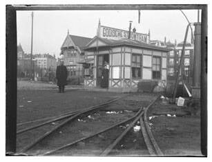 2. Het plaatskaartenloket aan de Mauritskade in 1902. Vanaf 1901 wordt er naast de ritten naar het Gooi elk half uur een lokaaldienst gereden vanaf Amsterdam Weesperpoort (WP) naar de Hogeweg en dit werd later uitgebreid tot Diemerbrug. Elk uur kon men naar Muiderberg reizen en eenmaal in de twee uur naar Laren. (bron j.)