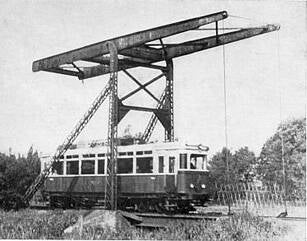 17a*. De tram had komende vanaf Bussum naar ABRI een eigen spoor en ophaalbrug gekregen door de weilanden, iets zuidelijker dan het oorspronkelijke spoor. Er is op deze plek nog wel een ophaalbrug, echter een veel kleinere die alleen voor fietsers is. Eén van de NTM loks rond 1941. (bron NTM)